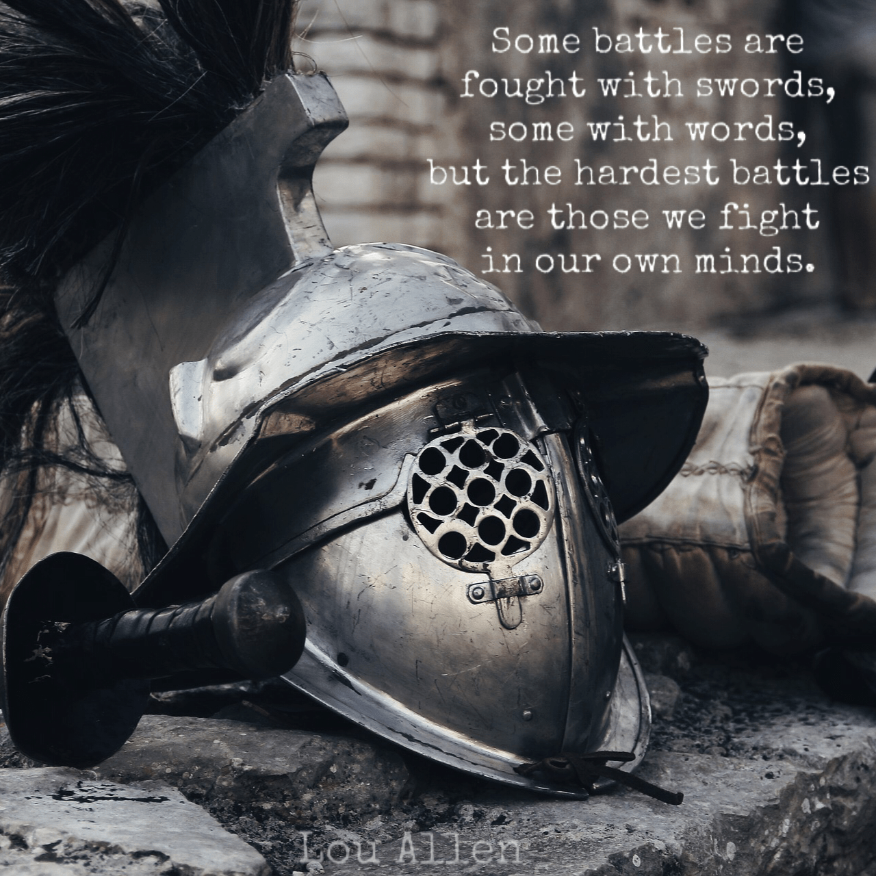 Lou Allen said: “Some battles are fought with swords, some with words, but the hardest battles are those we fight in our own minds.”