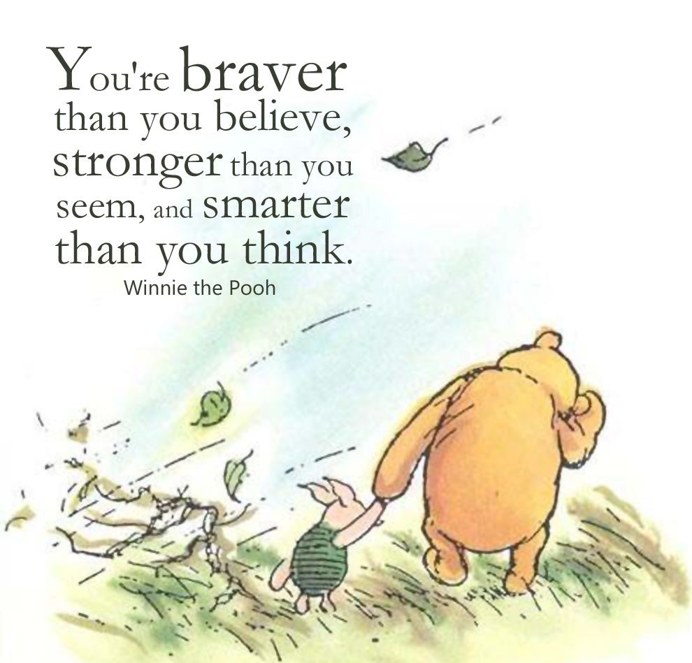 In A.A. Milne’s (1882-1956) classic children’s book Winnie the Pooh, Christopher Robin tells Pooh Bear: “You are braver than you believe, stronger than you seem, and smarter than you think.”