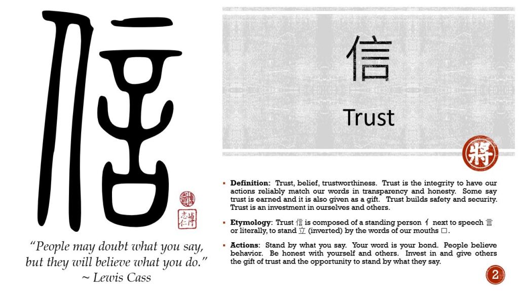 Then we did the trust reflection to stand by what we say and how we can both earn that trust and give that trust. How can we invest in ourselves and our own integrity and also give others the opportunity and invest in them? And what gets in the way of that? Right? Where are the breakdowns in our own self-trust? To really reflect on that.