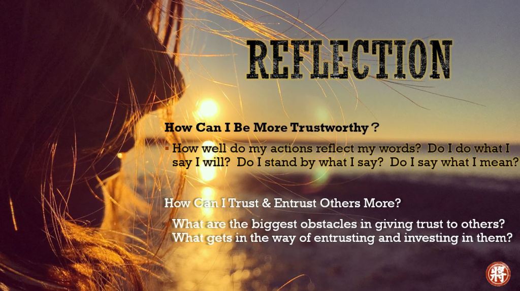 The second part of this reflection is: How can I trust and entrust others more? And what are the biggest obstacles in giving that trust? What gets in the way? Inherently, we all want to trust others and yet sometimes we’ve been burned and so it’s time to reflect on and reevaluate that and really dig in and say: Is it helpful for me to not trust others because I was burned by this person in the past? Is it helpful to other people for me to project this onto them? As a leader, we really need to dig into this because a lack of trust breeds controlling and micromanaging and there’s nothing worse in a leadership position than someone who micromanages who is controlling and who doesn’t trust their people to get their jobs done.