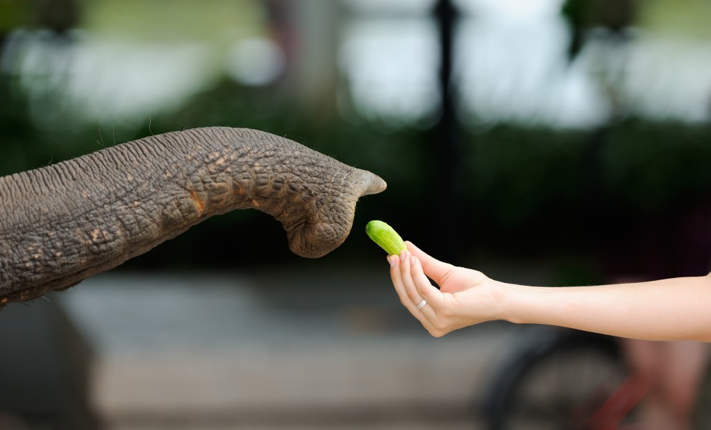 Etymology of wei4 爲 (simplified: 为) to do, to make. The character is comprised of a hand 爫 above an elephant 象, or literally to feed an elephant – to accomplish a grand thing. How do we feed an elephant?